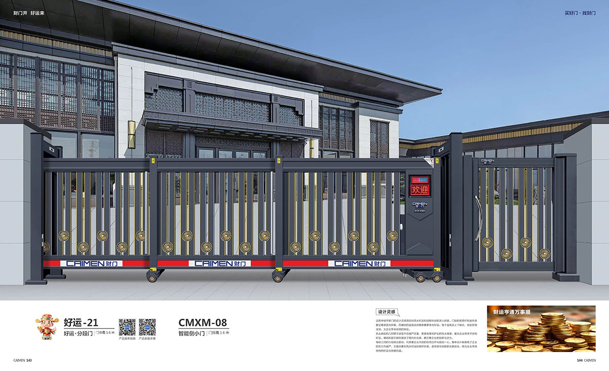這款伸縮平移門的設(shè)計靈感源自對風(fēng)水好運和創(chuàng)新科技的深入探索。門排的寬豎桿和金色條象征著穩(wěn)固與財富,而鑲嵌的金錢花則寓意著繁榮與好運。每個金錢花上下起伏,宛如財源滾滾,為企業(yè)帶來持續(xù)的財運。機頭前臉的幾何獅子造型不僅威嚴莊重,更具有鎮(zhèn)宅護業(yè)的風(fēng)水寓意,能為企業(yè)帶來平安和好運。鑲嵌的顯示屏則增添了現(xiàn)代科技感,展示著企業(yè)的創(chuàng)新與活力。每段之間的互相吻合聯(lián)動,代表著企業(yè)內(nèi)部的協(xié)同合作與團結(jié)一心。整體設(shè)計既展現(xiàn)了企業(yè)的實力與威嚴,又蘊含著對風(fēng)水好運的美好祈愿,是傳統(tǒng)與創(chuàng)新的完美結(jié)合,將為企業(yè)帶來獨特的好運與發(fā)展機遇。
