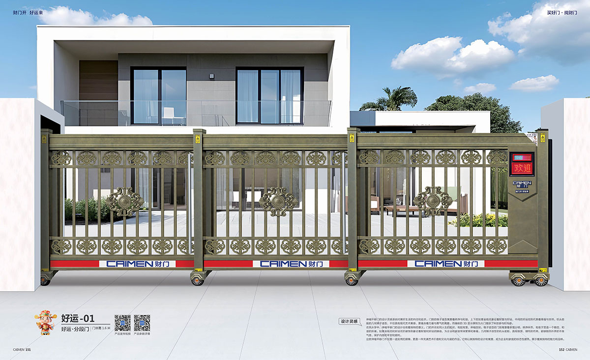伸縮平移門的設計靈感源自對美好生活的向往和追求。門排的格子造型寓意著秩序與和諧,上下的如意金錢花象征著財富與好運,中間的好運花則代表著幸福與吉祥。機頭前臉的幾何獅子造型,不僅具有現(xiàn)代藝術美感,更蘊含著力量與勇氣的寓意。而鑲嵌的 3D 顯示屏則為大門增添了科技感與時尚感。在風水學中,伸縮平移門的設計也有著獨特的意義。門的開合如同人生的起伏,有起有落,伸縮自如。格子造型的門排寓意著條理分明,秩序井然,有助于營造一個穩(wěn)定、和諧的環(huán)境。如意金錢花和好運花的裝飾則象征著財富和好運的降臨,為企業(yè)和家庭帶來繁榮和幸福。幾何獅子造型的機頭前臉,具有辟邪、鎮(zhèn)宅的作用,能夠阻擋外界的不良氣息,保抉內(nèi)部的平安和順利。這款伸縮平移門不僅是一道實用的屏障,更是一件充滿藝術價值和文化內(nèi)涵的作品。它將以其獨特的設計和寓意,成為企業(yè)和家庭的標志性建筑,展示著其獨特的魅力和品味。