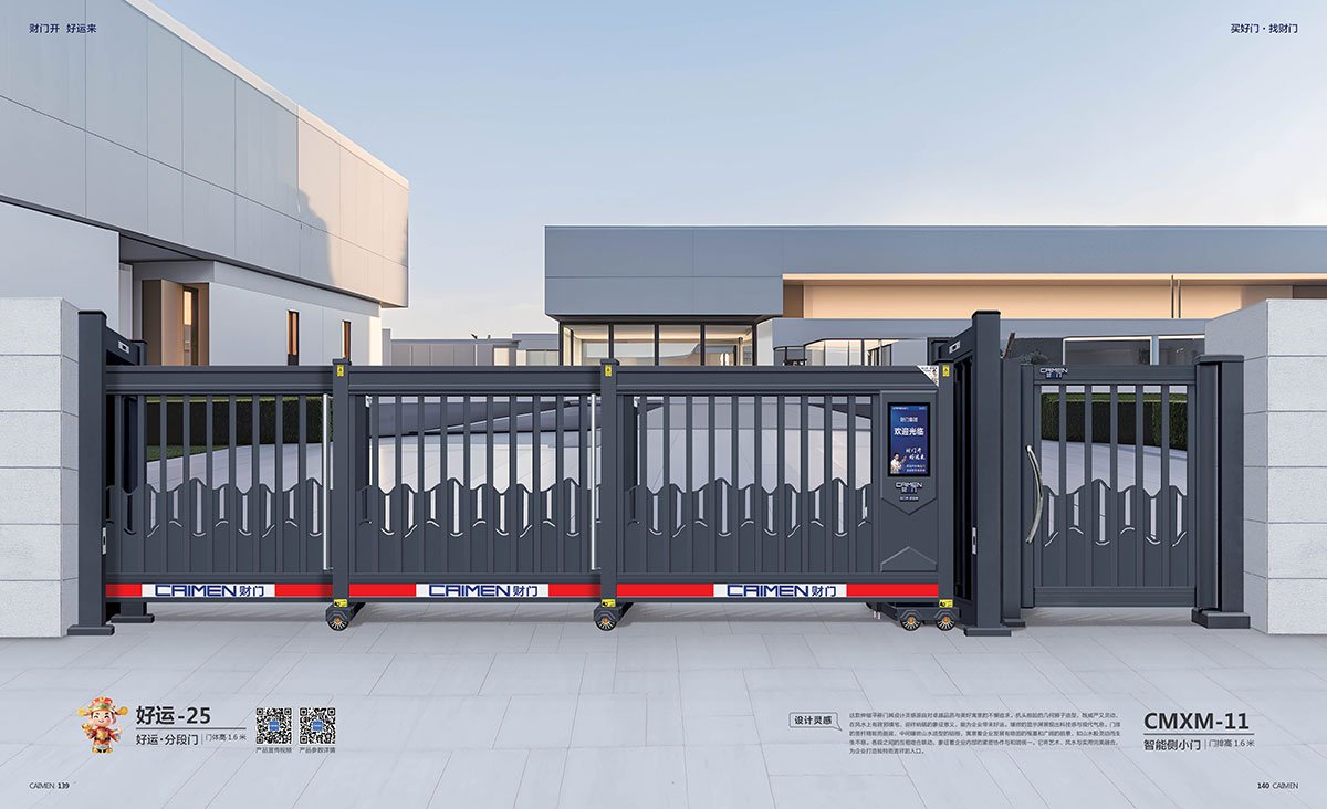 這款伸縮平移門其設(shè)計(jì)靈感源自對(duì)卓越品質(zhì)與美好寓意的不懈追求。機(jī)頭前臉的凡何獅子造型,既威嚴(yán)又靈動(dòng),在風(fēng)水上有辟邪鎮(zhèn)宅、迎祥納福的象征意義,能為企業(yè)帶來好運(yùn)。鑲嵌的顯示屏展現(xiàn)出科技感與現(xiàn)代氣息。門排的豎桿精致而挺拔,中間鑲嵌山水造型的锫板,寓意著企業(yè)發(fā)展有穩(wěn)固的根基和廣闊的前景,如山水般靈動(dòng)而生生不息。各段之間的互相吻合聯(lián)動(dòng),象征著企業(yè)內(nèi)部的緊密協(xié)作與和諧統(tǒng)一。它將藝術(shù)、風(fēng)水與實(shí)用完美融合為企業(yè)打造獨(dú)特而吉祥的入口。